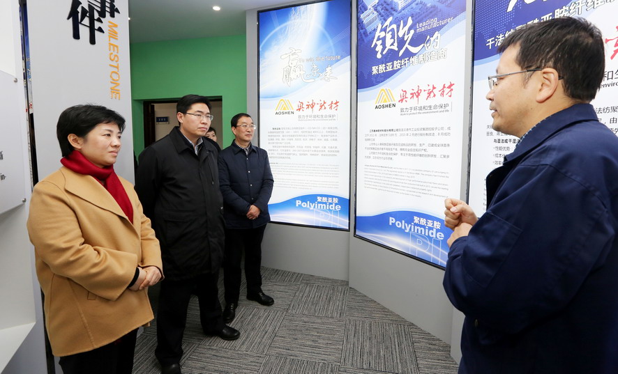 萬聞華一行先后參觀了奧神新材料公司展廳和生產車間,聽取了該公司目前的發展情況匯報,詳細了解高性能纖維產品的相關性能和發展前景,對該公司在纖維行業等方面取得的成績給予充分肯定。萬聞華希望奧神新材料公司要進一步突出“高、新、優”特色,不斷推動產業高端化、規模化、集聚化發展,為推動全市纖維新材料產業發展做出新的貢獻。