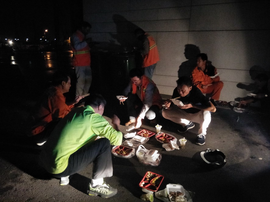 9月14日,連續(xù)忙碌了兩個禮拜的職工們還沒來得及休息,便又投入到“連博會”的準(zhǔn)備工作中去。由于本屆“連博會”共有來自27個國家和地區(qū)的420家企業(yè)參展,展覽總面積達(dá)3.7萬平方米,各家展商在布置展臺時,各類生活垃圾、裝修垃圾等一度將該公司布設(shè)的100多個垃圾桶都塞滿了,在安排好人工清理的同時,該公司還安排垃圾清運(yùn)車對積存垃圾進(jìn)行清理清運(yùn),組織灑水車對會場及周邊道路進(jìn)行沖洗,一直到9月18日晚上9點(diǎn)左右才完成準(zhǔn)備工作。19日“連博會”開幕當(dāng)天,負(fù)責(zé)現(xiàn)場保潔工作的職工們早上6點(diǎn)多就趕到了會場,冒雨在會場周邊開始忙碌,一臺大型清掃車和一臺灑水車也在會場旁隨時待命。到了中午,當(dāng)展商們在室內(nèi)小憩的時候,室外的職工們?yōu)榱瞬坏⒄`事,站在風(fēng)口匆匆地扒拉兩口混雜著雨水的盒飯,就又投入到緊張的清理工作中去。僅19號開幕當(dāng)天,累計(jì)清理各類垃圾7噸左右,為“連博會”的正常召開提供了一個干凈、整潔的會場環(huán)境。