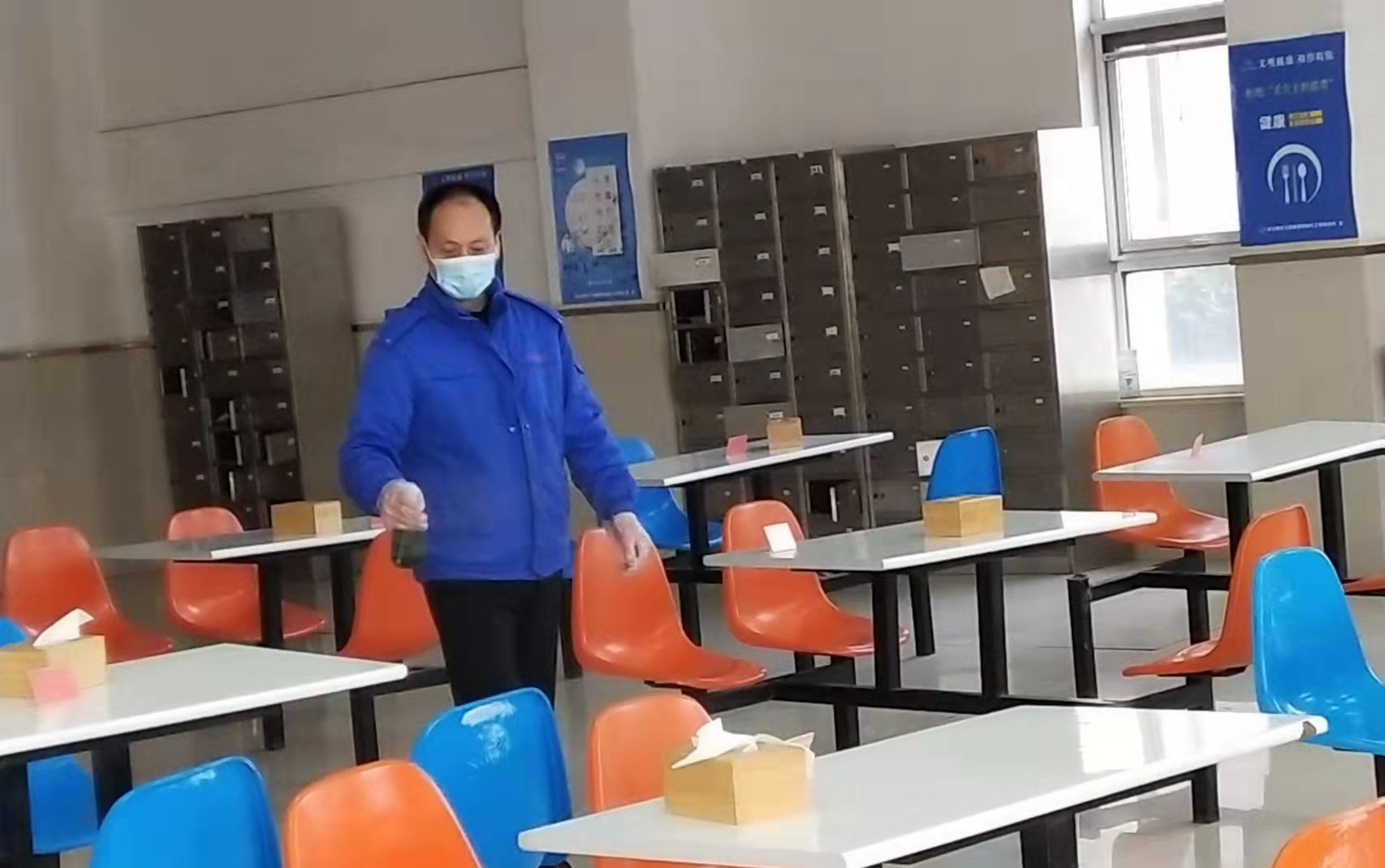 情期間,為了讓留崗員工吃上放心餐,后勤司務長王樹偉帶領餐廳員工安家在餐廳,時刻照應著餐廳的大小事務。為了確保所購菜蔬新鮮,他堅持頭前一天晚上就和供應商聯系食材。但是在這個非常時期,有時候明明訂好的食材卻臨時又缺貨,于是他就一個電話接一個電話的再找人聯系購買,確保讓大家吃上新鮮安全的食材。每天,王樹偉都會親自安排每餐的飯菜,到廚房檢查食材制作情況,提高一線員工的伙食質量。從采購到搬運,一遍遍、一次次地不辭辛苦,累得渾身是汗也顧不得休息,只想盡快把工作落實到位。他說,兵馬未動糧草先行,我們要保障好一線員工的伙食,讓他們吃得飽才能打好這場硬仗。此外,他還每天上報部門員工的健康動態情況,做好體溫測量和餐廳環境消毒工作。