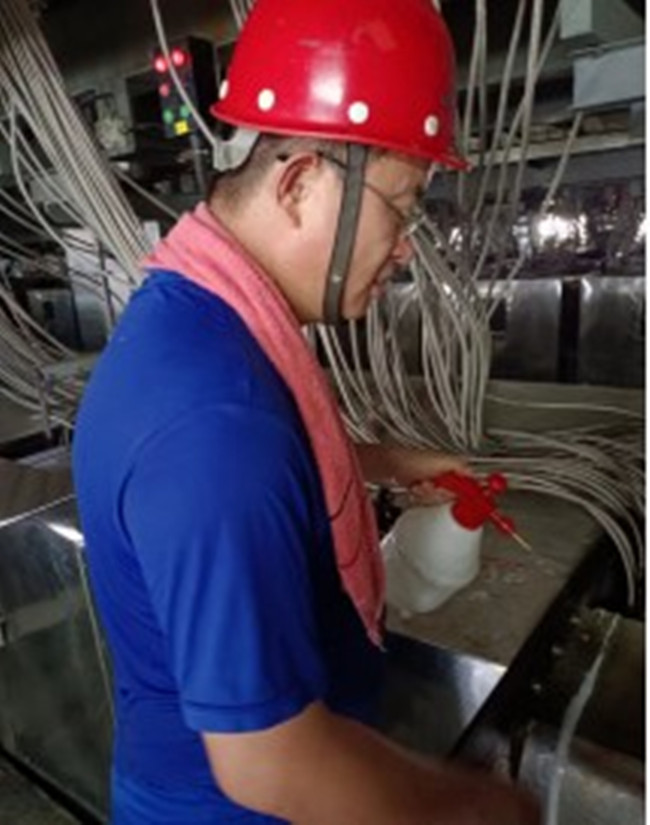 連日高溫悶熱天氣,幾乎人失去對溫度的判斷力。組件平臺的溫度每日高達50多度,員工站著不動都會不停出汗,更別提在平臺上進行操作了,每天幾乎都要濕幾遍衣服。