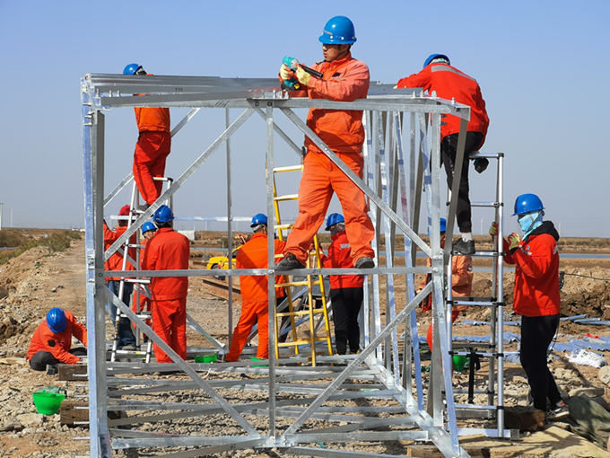 “他們這群小青年能把這36米高的鐵塔組裝起來?”業(yè)主在工地上充滿質(zhì)疑的說。灌云益風(fēng)風(fēng)電35KV集電線路項目是該公司首次自主安裝的工程項目,涉及面廣、任務(wù)重、工期短。這36米的鐵塔,別說這群90后的11名青年突擊隊員,就是所里的老師傅都不曾干過。面對質(zhì)疑,他們沒有理會,而是繼續(xù)埋頭苦干、一往無前。他們在開工前積極響應(yīng)號召,迅速集結(jié)、重裝上陣,認(rèn)真制定施工管理方案,合理安排施工工期,指定項目協(xié)調(diào)人,遇到問題,現(xiàn)場提出、現(xiàn)場協(xié)調(diào)、現(xiàn)場解決,就部分突出問題,重點(diǎn)分析、重點(diǎn)考慮、重點(diǎn)解決,同時通過早會和日報讓大家第一時間掌握到工期進(jìn)度,根據(jù)進(jìn)度合理安排工作,最大程度的提高了工程建設(shè)施工工作效率。當(dāng)天,11名青年突擊隊隊員頂著凜冽的寒風(fēng),在隊長孫迎照的指揮下硬是在短短的幾個小時內(nèi)將B14號鐵塔穩(wěn)穩(wěn)豎起,業(yè)主為此豎起了大拇指。