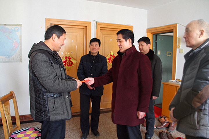 集團(tuán)公司組宣處處長江舜軍,干部處副處長孫同慶和公司領(lǐng)導(dǎo)王志軍等陪同走訪慰問。﹙徐靜﹚