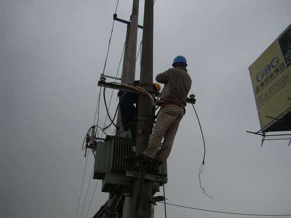 隨著開發園區基礎建設逐步推進,園區內配電工程量呈現平緩下降趨勢,該所響應公司號召,積極開拓園區內企業電力外包服務業務;他們努力轉變服務作風,完善服務職能,為用戶提供高效優質服務,并主動與開發區工業園區內的企業進行聯系,擴大服務門路,想方設法拓展供電區域。目前,該所已發展長期上門電力服務企業10家,實現服務費收入二十余萬元。圖為臺北供電所職工正在為金海投資集團公司進行線路維護服務(李吉成)