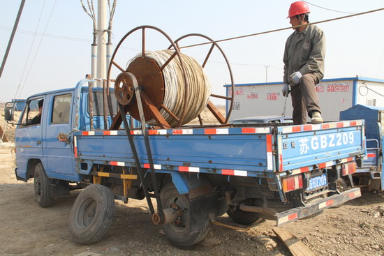 為解決這個難題,班組職工們自發(fā)地在一起探討研究,集思廣益,提出各種施工工具改進意見。經(jīng)過多次試驗,最終確定了利用機動車動力帶動放線架、取代人工放線的方法。改造后的放線設備收放線通用,人工操作與動力操作兩用。在工程施工中實際操作驗證,取得較好效果。