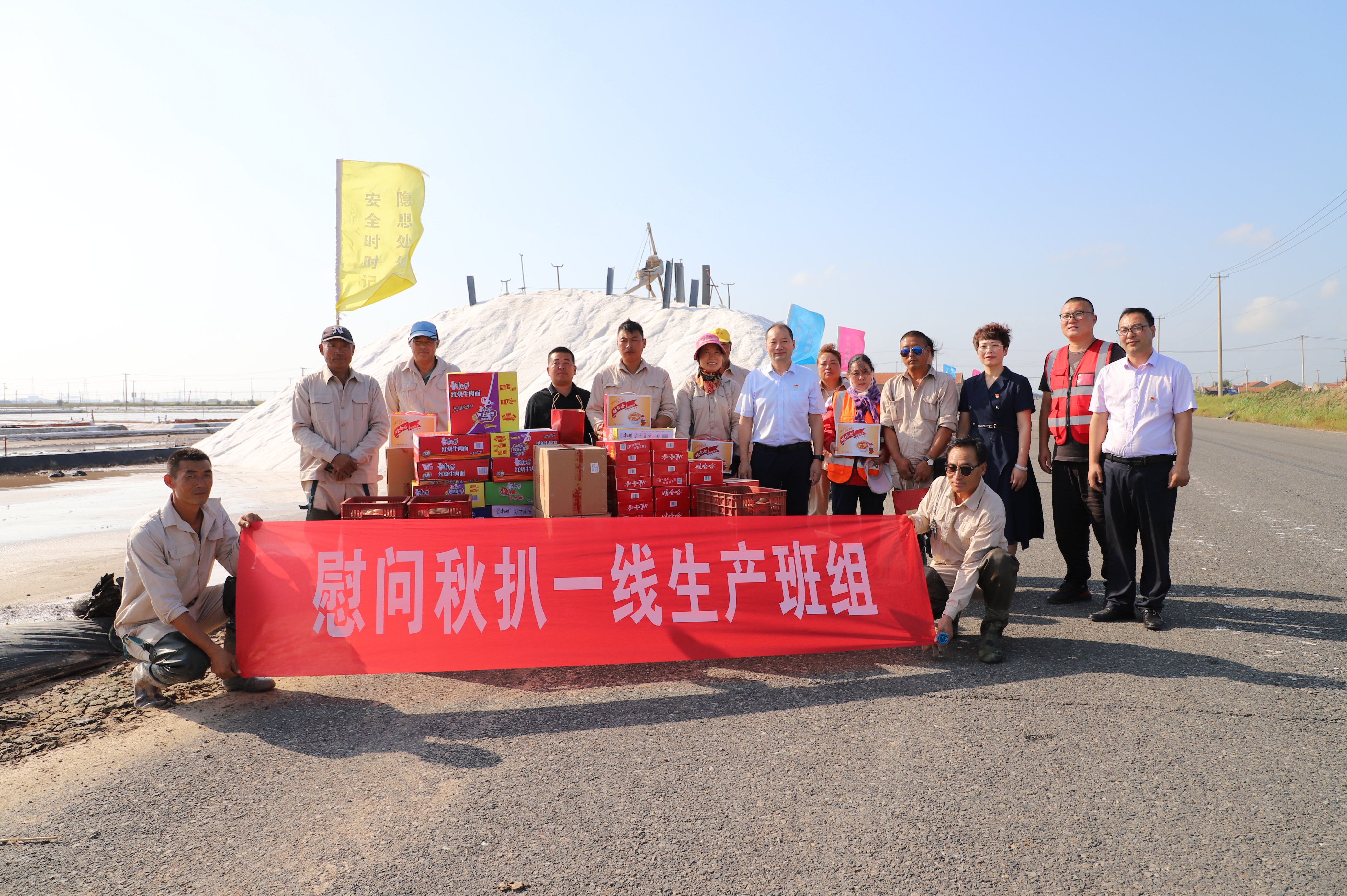 秋高氣爽,“國慶”將至。9月24日,投資公司黨委書記、董事長、總經理李國文,黨委副書記、工會主席王宏走訪慰問奮戰在一線的扒鹽員工并送上節日的慰問和祝福。