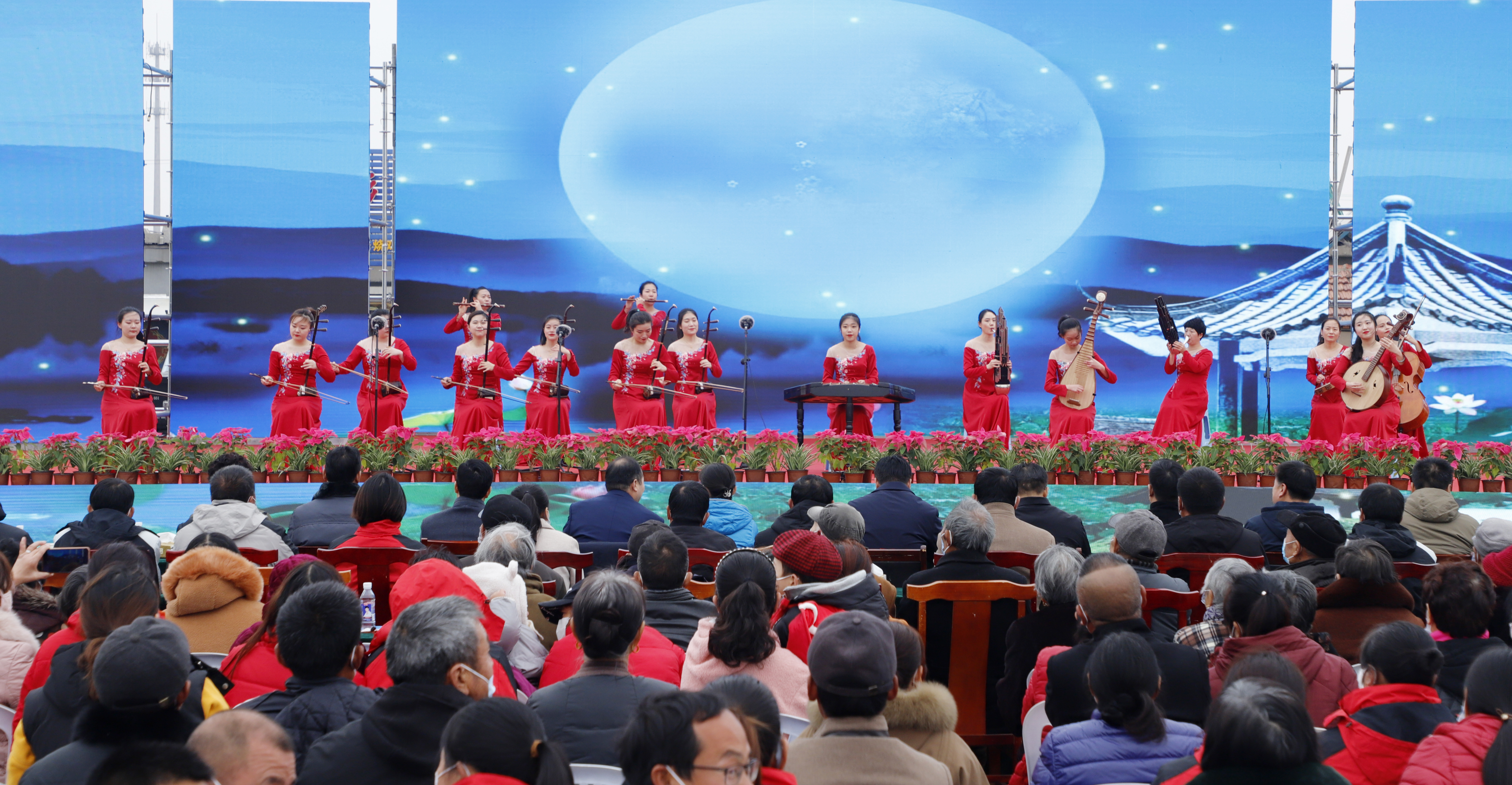 演出在精彩的合奏《水鄉情韻花好月圓》中拉開序幕,現場洋溢著歡樂的氣氛。健身操《向快樂出發》節奏歡快,動作利落灑脫,盡情釋放青春活力,獨舞《浣》旋律優美,衣袖舞動,舞出溫婉柔美之態。現代與古典、活力與韻味的巧妙結合,為現場觀眾帶來了一場視覺上的盛宴。男聲獨唱《我是真英雄》、二胡獨奏《太極琴俠》、舞蹈《我和我的祖國》,以及民樂合奏《樂見西游》,悅耳的人聲與悠遠的琴聲合鳴共振,營造出悠揚美妙的音樂劇場。相聲《歡聲笑語》和淮海戲《借靴》語言幽默風趣,劇情跌宕起伏,演員與臺下觀眾時不時的互動更是掀起了一波又一波的高潮。最終,精彩紛呈的演出在女聲獨唱《錦繡前程》中落下帷幕。