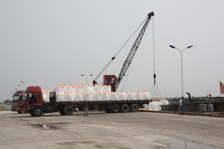據(jù)了解,在國(guó)慶長(zhǎng)假期間,該公司對(duì)各項(xiàng)工作做了充分的準(zhǔn)備,加強(qiáng)節(jié)日期間碼頭正常運(yùn)營(yíng)管理,對(duì)碼頭工人進(jìn)行了排班,對(duì)吊裝設(shè)備、裝卸人員進(jìn)行細(xì)致的安排部署,確保了國(guó)慶長(zhǎng)假生產(chǎn)經(jīng)營(yíng)不停息。雨日過(guò)后,從3日開始,五灌河碼頭就是一派車水馬龍景象,只見一輛輛滿載噸袋的運(yùn)輸卡車整齊的停放在路邊,一艘艘貨船在泊位上靜靜停泊等待,兩臺(tái)吊車正在進(jìn)行著噸袋吊裝,掛鉤、移動(dòng)、解鉤,車上船艙內(nèi)工人密切配合,動(dòng)作熟練,將潔白的噸袋穩(wěn)穩(wěn)地裝船,每天吊裝噸袋30多車。在不遠(yuǎn)處的自卸碼頭,一輛輛運(yùn)鹽車輛,通過(guò)卸鹽滑板,直接將滿車斗的鹽倒入船艙,僅兩三天就裝鹽2000余噸。(季興勝)