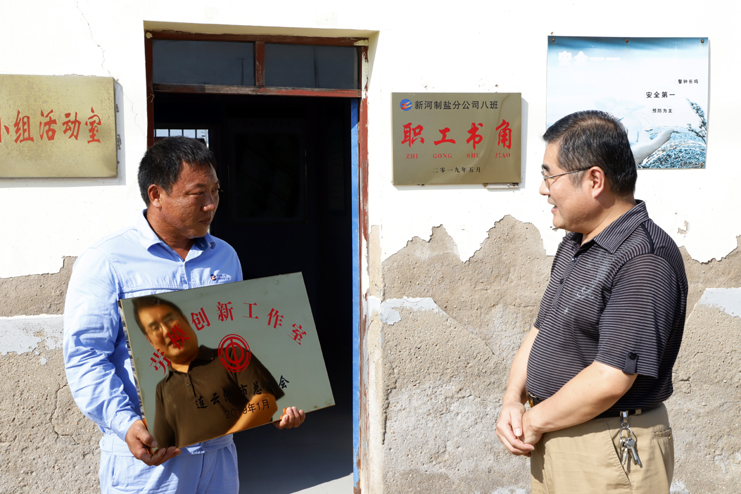 8月22日下午,市總工會副主席陳健一行到工投集團日曬制鹽公司,為連云港市勞動模范祝星星“勞模創新工作室”授牌。