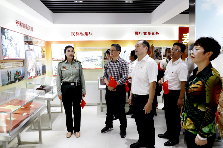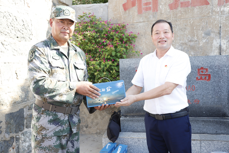 上午9點10分,隨著百名人員的陸續(xù)登島,往日寧靜的開山島突然熱鬧起來,紅旗飄舞,歌聲飛揚(yáng)。沿著山梯而上,重走全國“人民楷模”、“最美奮斗者”、優(yōu)秀共產(chǎn)黨員王繼才同志生前的巡島路線,追尋英模足跡;參觀“開山島夫妻哨所事跡展示館”,瞭望臺、生活間和營房,實地感受王繼才夫婦在環(huán)境異常惡劣的開山島上,以島為家、與海為鄰,舍家為國、不畏艱險,32年如一日堅守海防事業(yè)的奉獻(xiàn)精神;在開山島最高處的國旗廣場上,黨員們一起觀看守島民兵升國旗,組織開展重溫入黨誓詞儀式,教育引導(dǎo)全體黨員不忘初心,牢記使命。