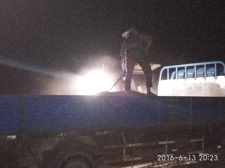 他立即會同農業分公司的全體員工,開赴地頭,搶收小麥。聯合收割機馬力開足,看著一壟壟小麥被收割完,看著一袋袋小麥被裝運上車,該公司參加搶收人員仍然忙碌著。天黑了,他們打開車燈和手提電燈,頂著高溫、忍受著蚊蟲的叮咬,目標只有一個,在雨到來前一定要完成小麥搶收任務。