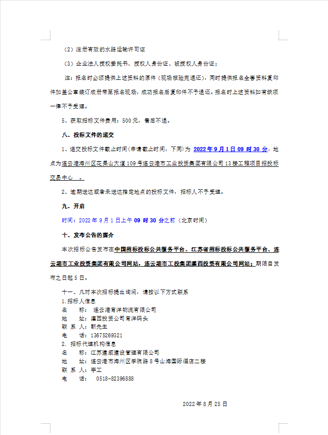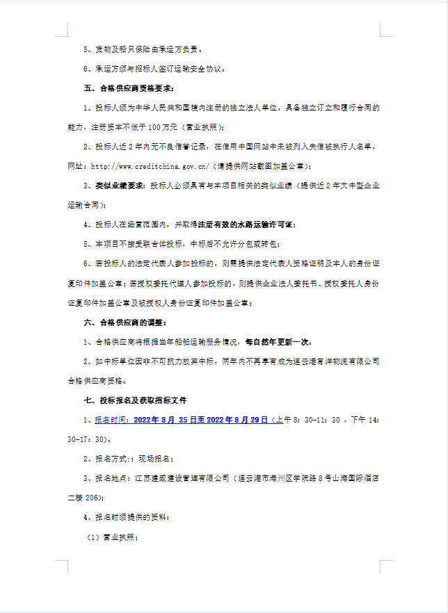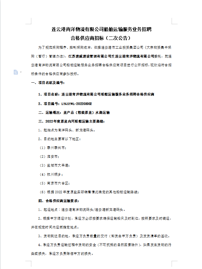 連云港宵洋物流有限公司船舶運輸服務(wù)業(yè)務(wù)招聘合格供應(yīng)商招標(二次公告)