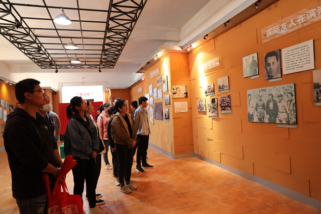 ? ?全體青年在講解員同志的帶領(lǐng)下拾階而上,認(rèn)真聆聽學(xué)習(xí)了抗日時(shí)期革命先烈為民族獨(dú)立與解放拋頭顱、灑熱血的英雄事跡。青年代表向革命先烈敬獻(xiàn)了花籃,向烈士冢三鞠躬默哀,緬懷先烈。隨后,在烈士冢前,面對黨旗,青年黨員舉起右手重溫入黨誓詞。