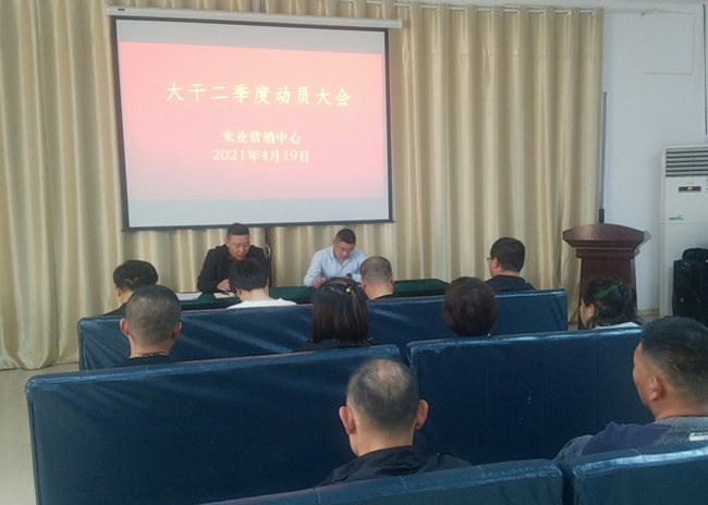 ? ? ? ?4月19日,米業營銷中心召開大干二季度動員大會,進一步貫徹落實投資公司二屆一次職代會暨第二次工代會會議精神,結合“崗位建新功、創效爭一流”大干二季度勞動競賽,規劃部署米業全年工作,分解全年銷售任務,以分解量化的季度指標,以月保季、以季保年,緊扣工作目標,明確責任分工,凝心聚力,共謀發展。