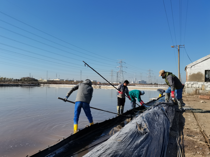 海州灣公司的礦鹵鹽升級改造續產工程現場,工人們干得熱火朝天,十分起勁。修復塑池工序復雜,勞動強度大,知悉此情況后,公司黨委組織安排各支部黨員職工輪流至海州灣公司助力修灘?,F已完成先鋒班組結晶池池埝修整7塊,2240米,拆分浮板晾曬200米。