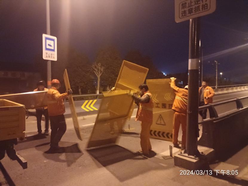 通過3個多小時的連續作業,順利完成馬山立交橋兩側圍擋安裝工作,為城市按下了“安全”鍵