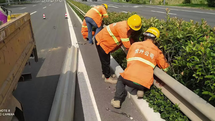 維修現場,道路養護工人正在徐新路靠近242省道處更換一處波形護欄,隊員們手持專用工具快速、高效施工,順利更換波形鋼護欄2節,總長8米,及時消除了安全隱患,有效維護道路安全暢通。本次對徐新路沿線轄區波形護欄搶修,嚴格按照城建部門要求,對中斷的道路護欄要求維修人員及時進行給予補接,對個別出現嚴重損壞的護欄進行拆除換新。此次共完成徐新路沿線4處地段波形護欄更換工作。更換護欄8節,32米。達到道路設施齊全、安全、美觀目的。(楊維軍)